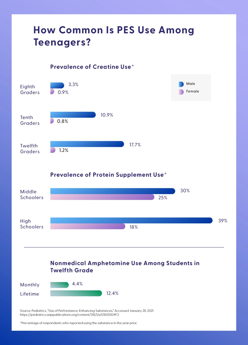 In a 2020 Pediatrics study on legal performance-enhancing substances, researchers found that PES use in adolescence and young adulthood was associated with problematic alcohol use and other risky behaviors later on.